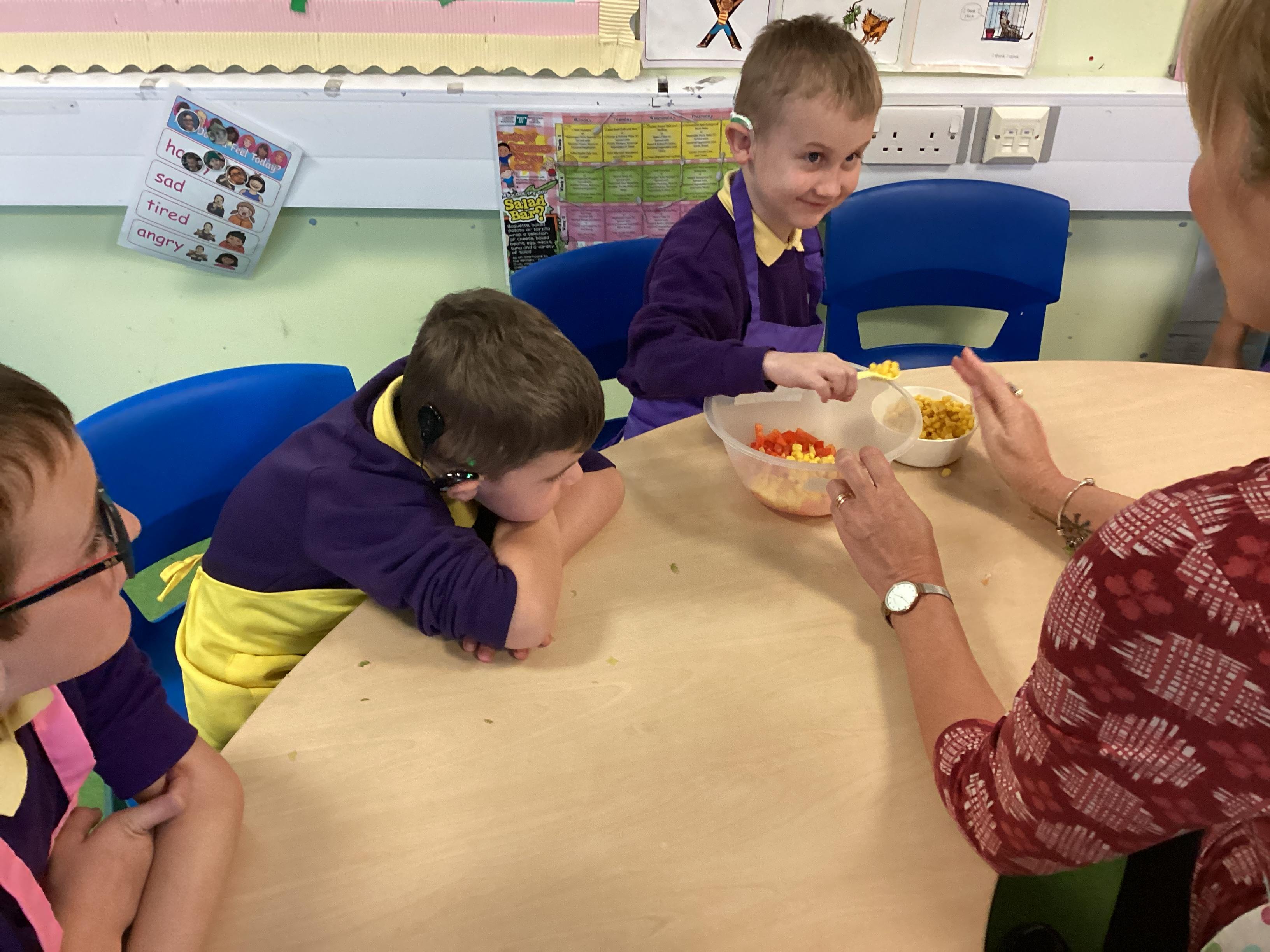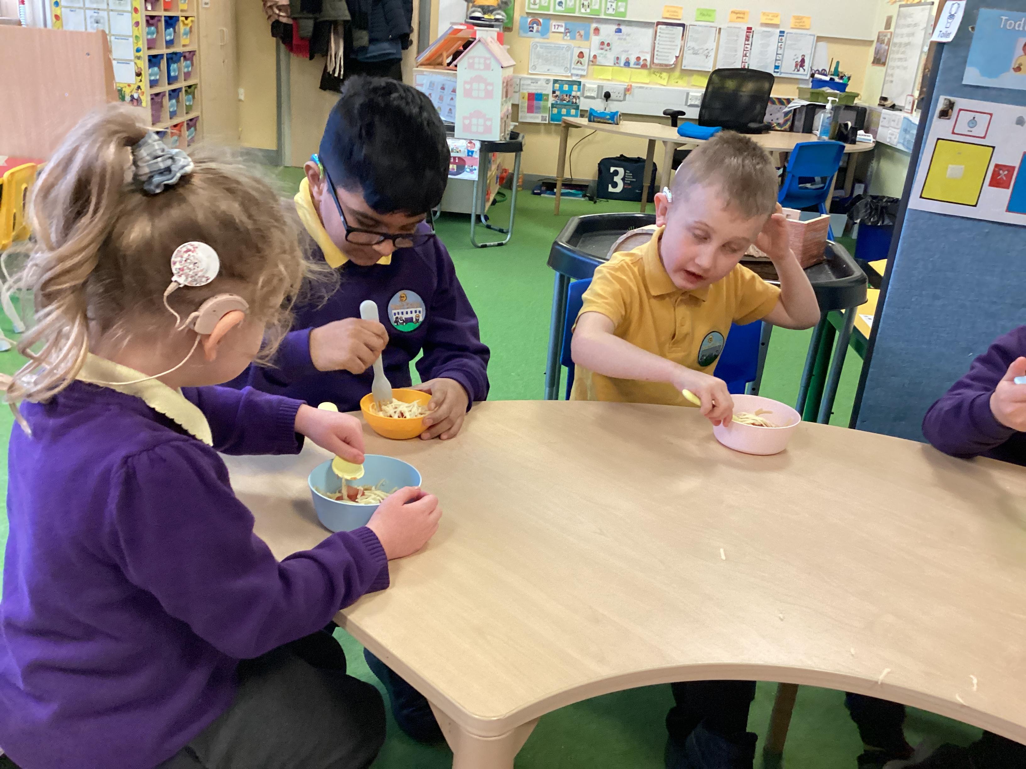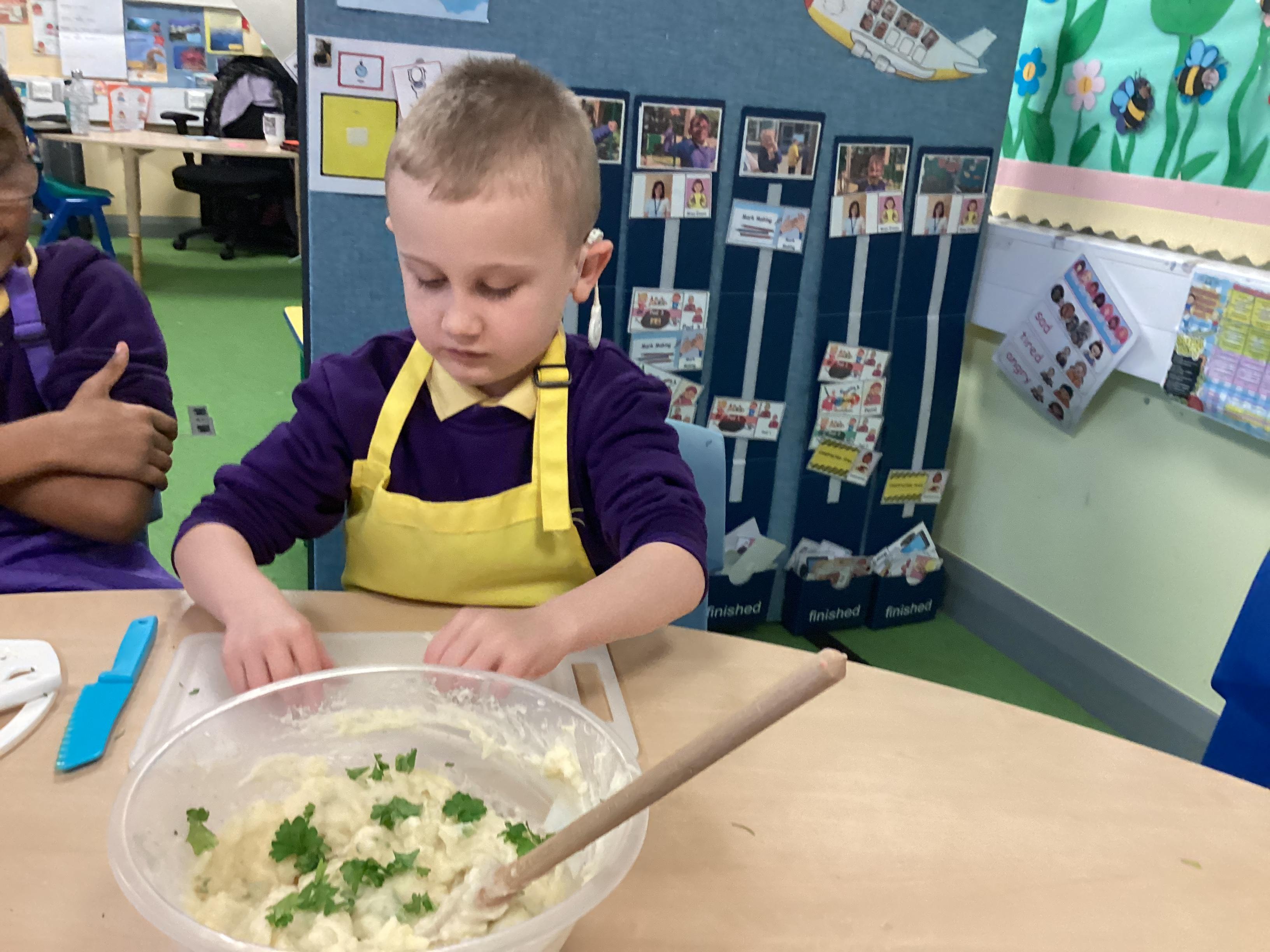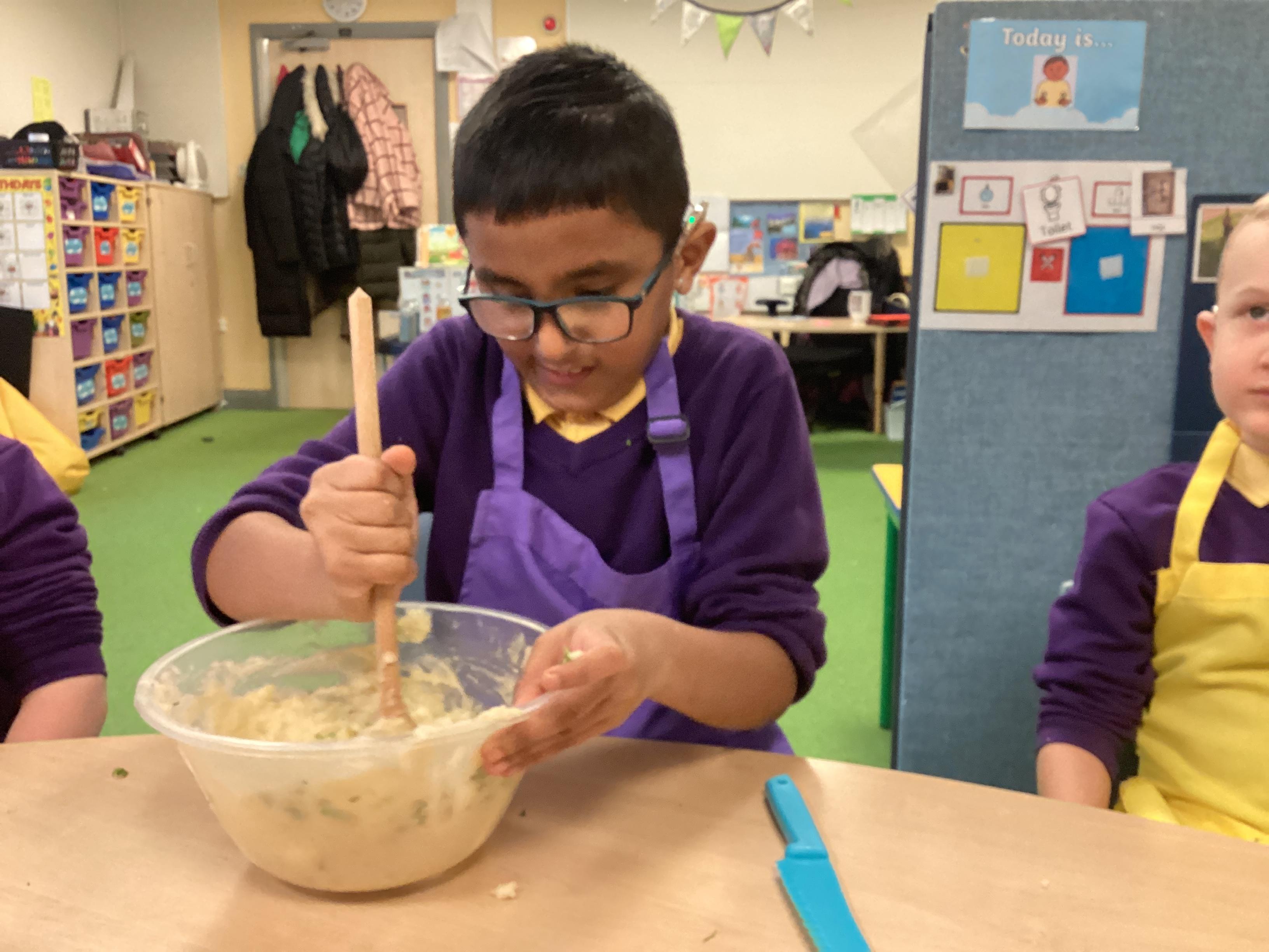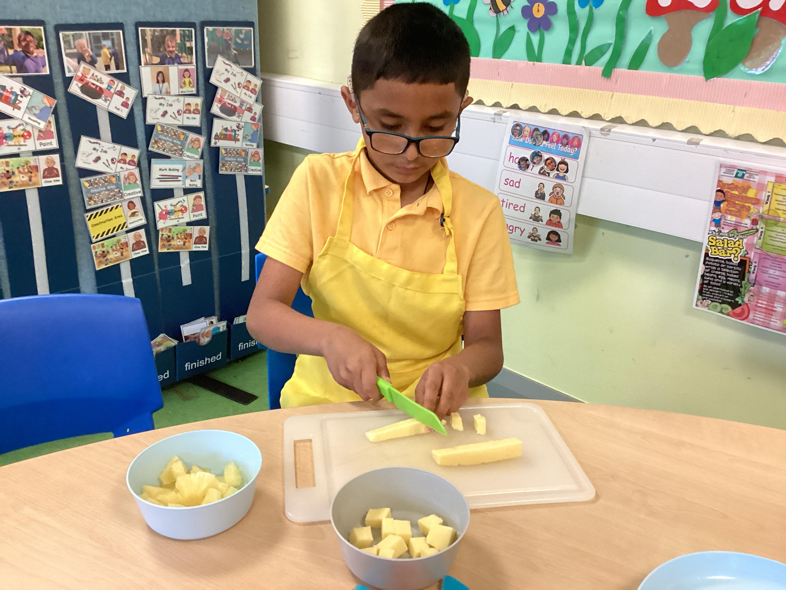 In the DRB classroom, cooking is more than a fun activity—it’s a meaningful way to support student growth and learning. Hands-on cooking experiences help children practice fine motor skills, strengthen math and language development, and build essential life skills they’ll carry beyond the classroom. Cooking also fosters a positive relationship with food, encourages healthy choices, and gives students a sense of pride and confidence in their accomplishments. By preparing and sharing food together, students learn to follow instructions, work collaboratively, and discover where their food comes from in an engaging, educational environment.