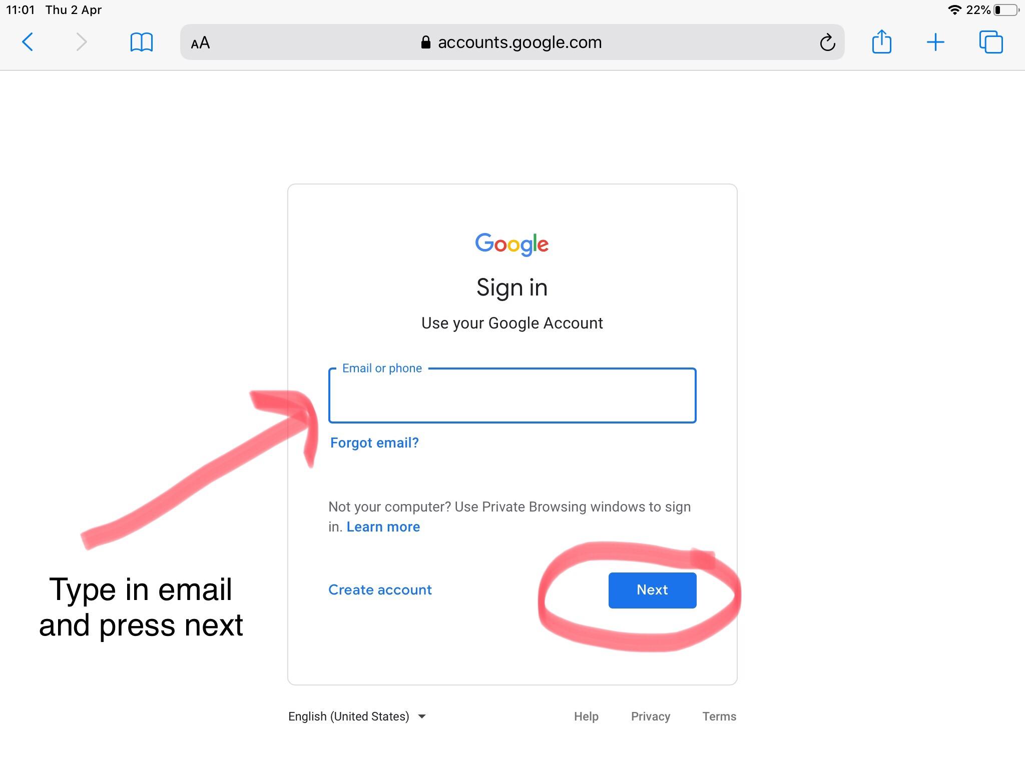 Google Classroom (signing in)