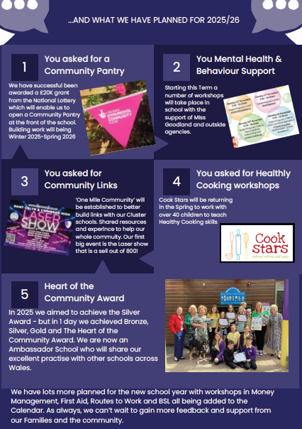 Please have a look at the attached document to see some of the things we have been up to. Your feedback shaped all of this. You asked, we listened – and we’re just getting started. Thank you for being part of our journey to make Nant Celyn the heart of our community!