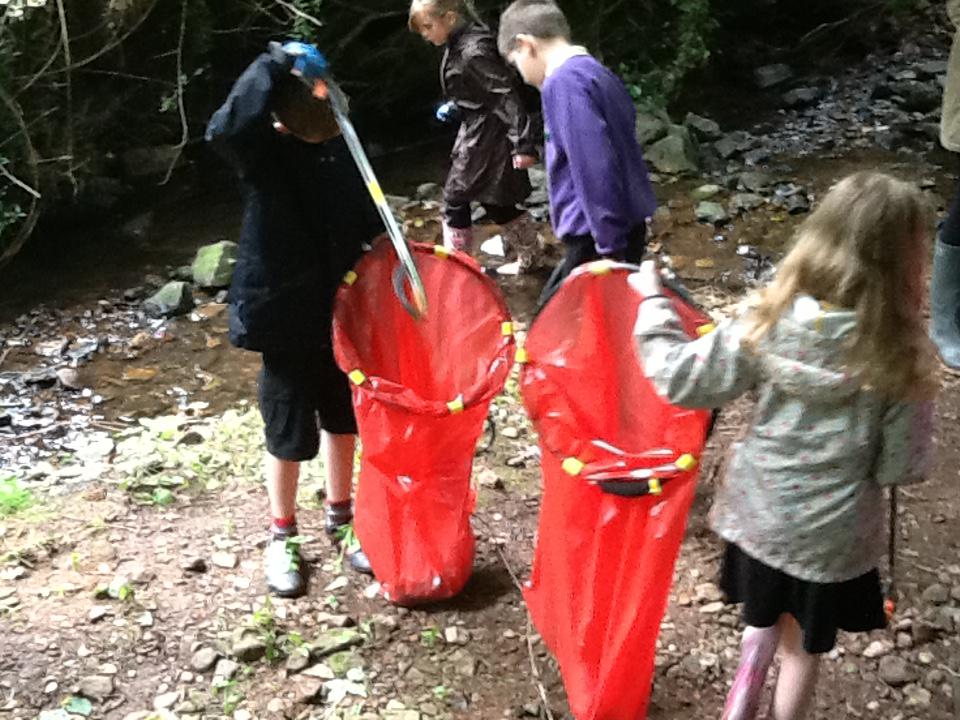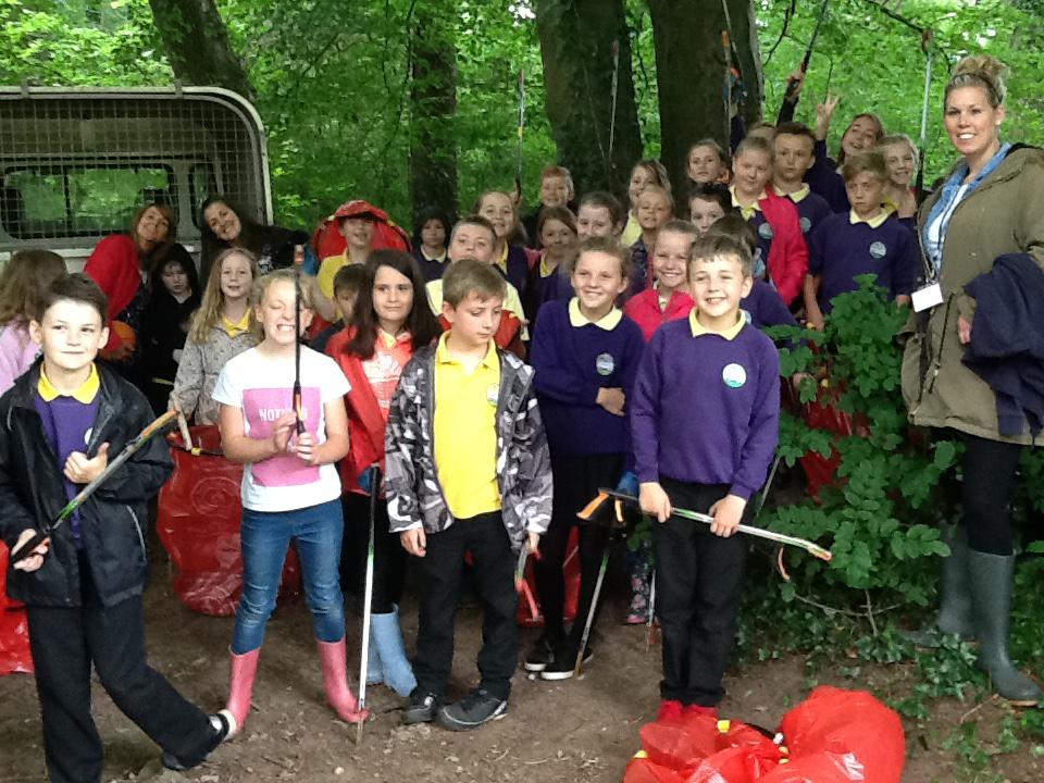The children and staff at Nant Celyn School work with Tom Board of Keep Wales Tidy collecting litter in the wider community.