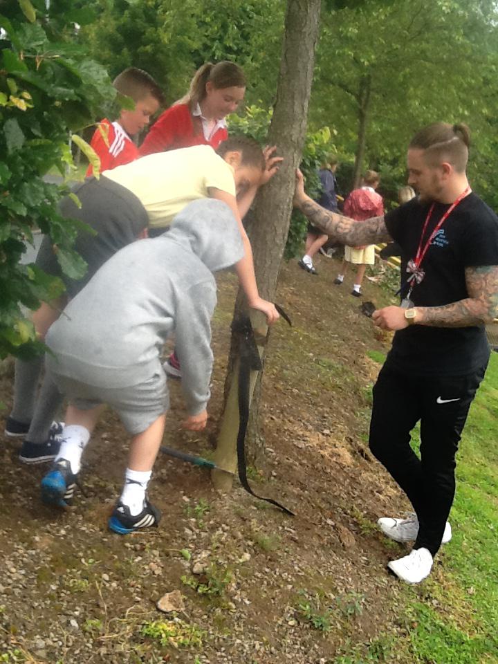 Nant Celyn pupils working with Jon Howells from TCBC improving the grounds in the school and the wider community.