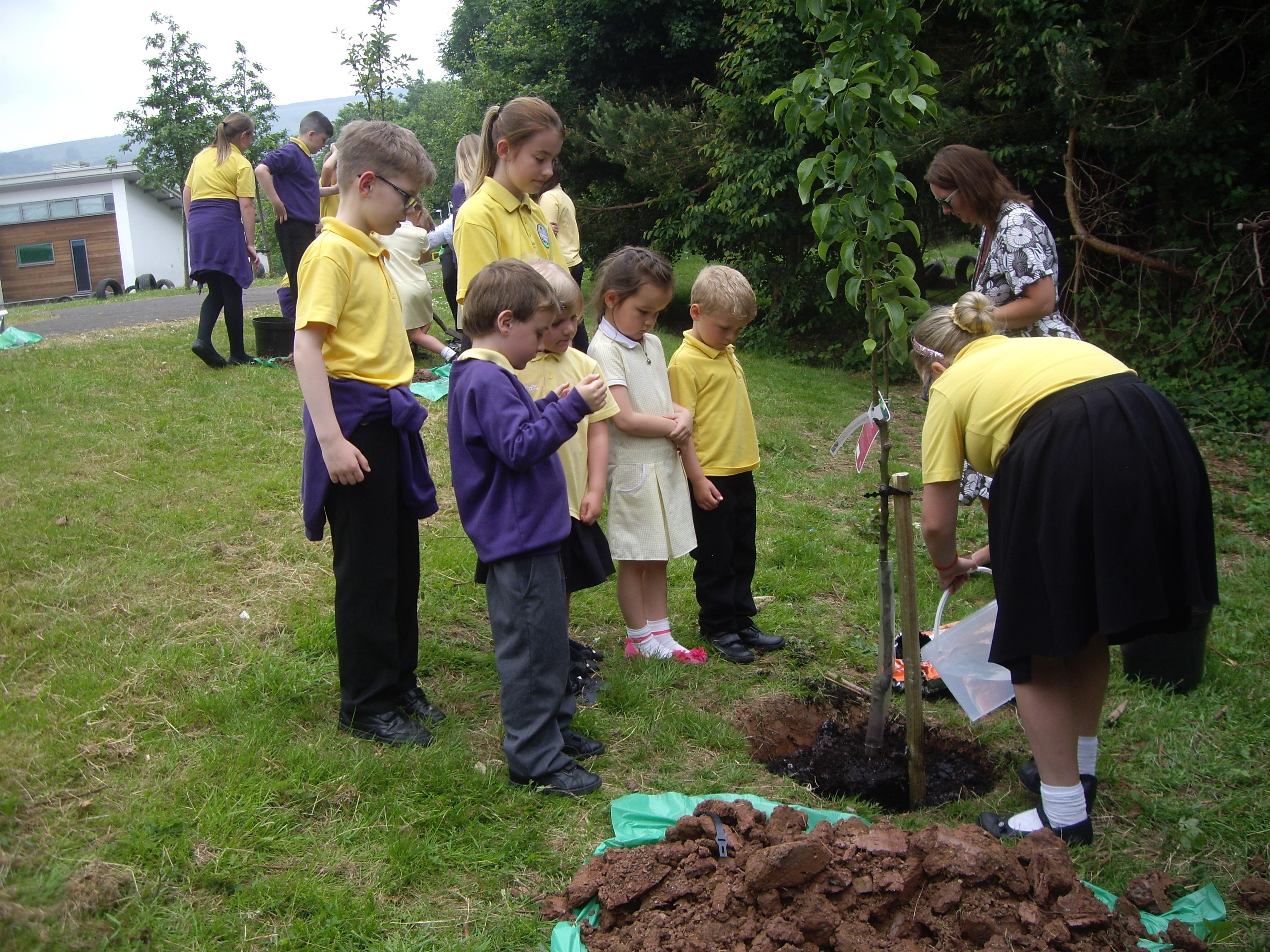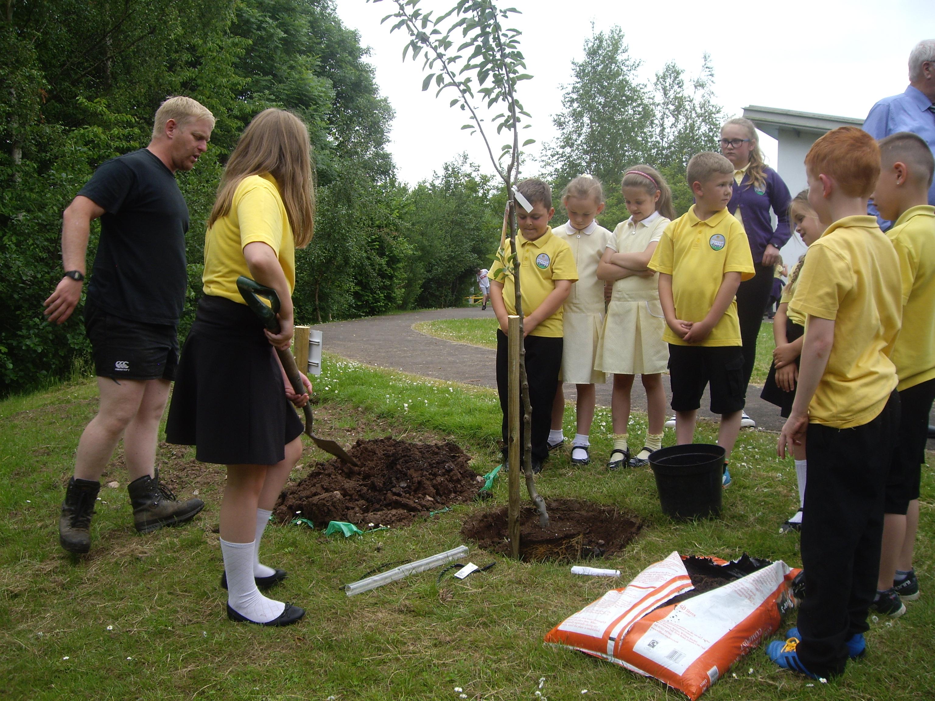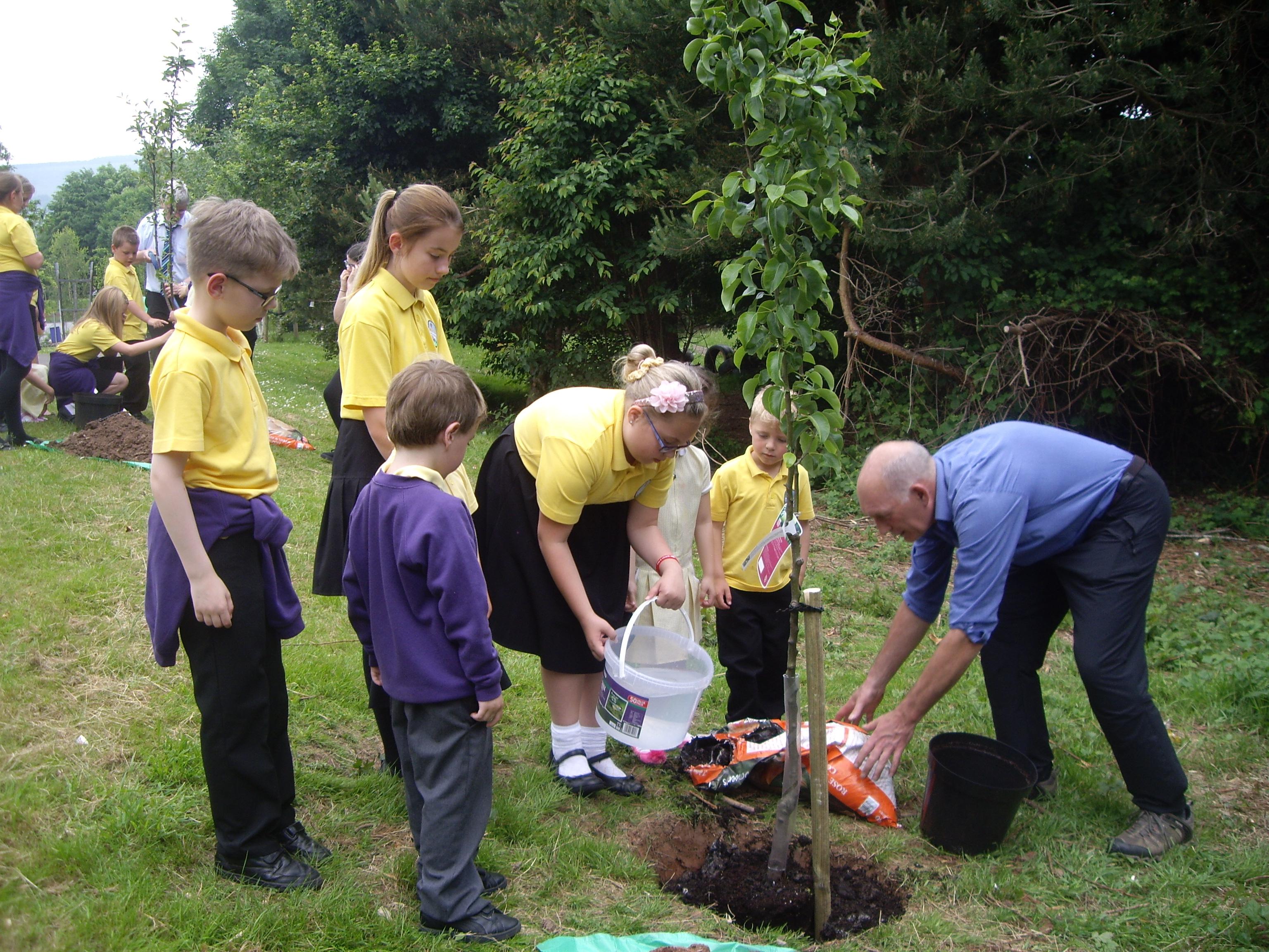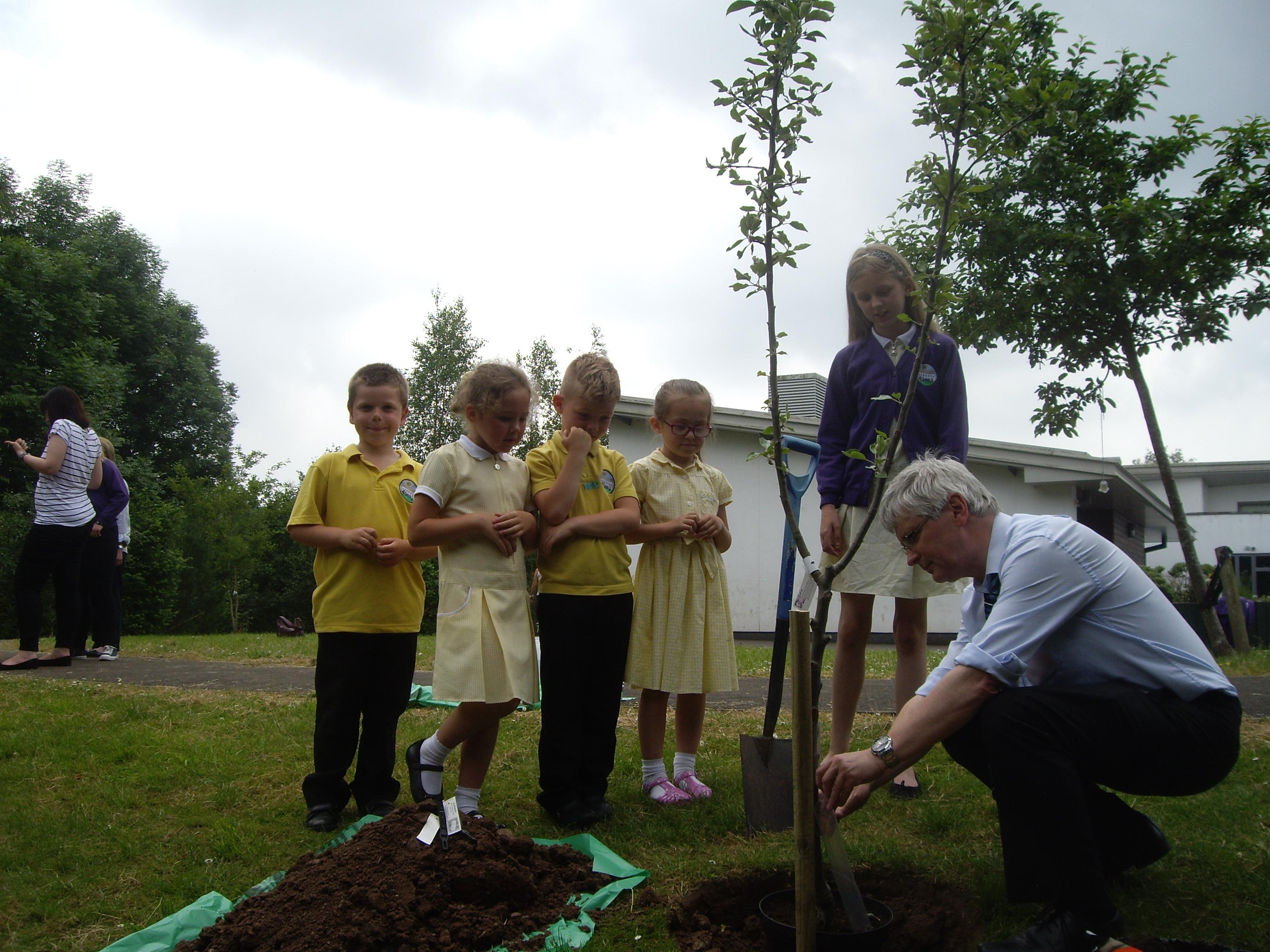 Andrew Nevill and Steve Williams from TCBC donated fruit trees, then we invited Council Leader Bob Wellington to a tree planting ceremony to celebrate the improvements being made within our school grounds.