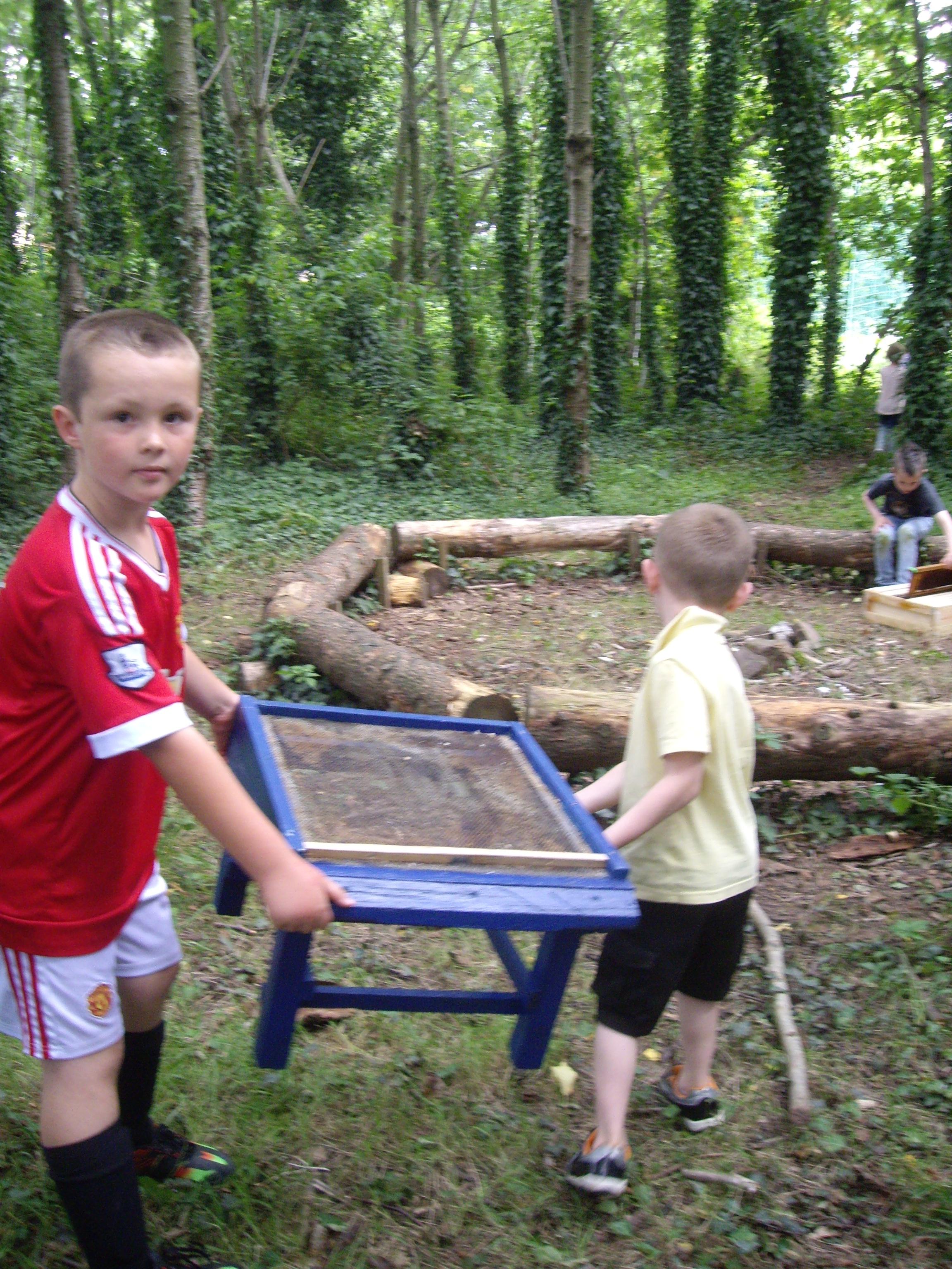 The children enjoy forest school activities with Jon Howells from TCBC.