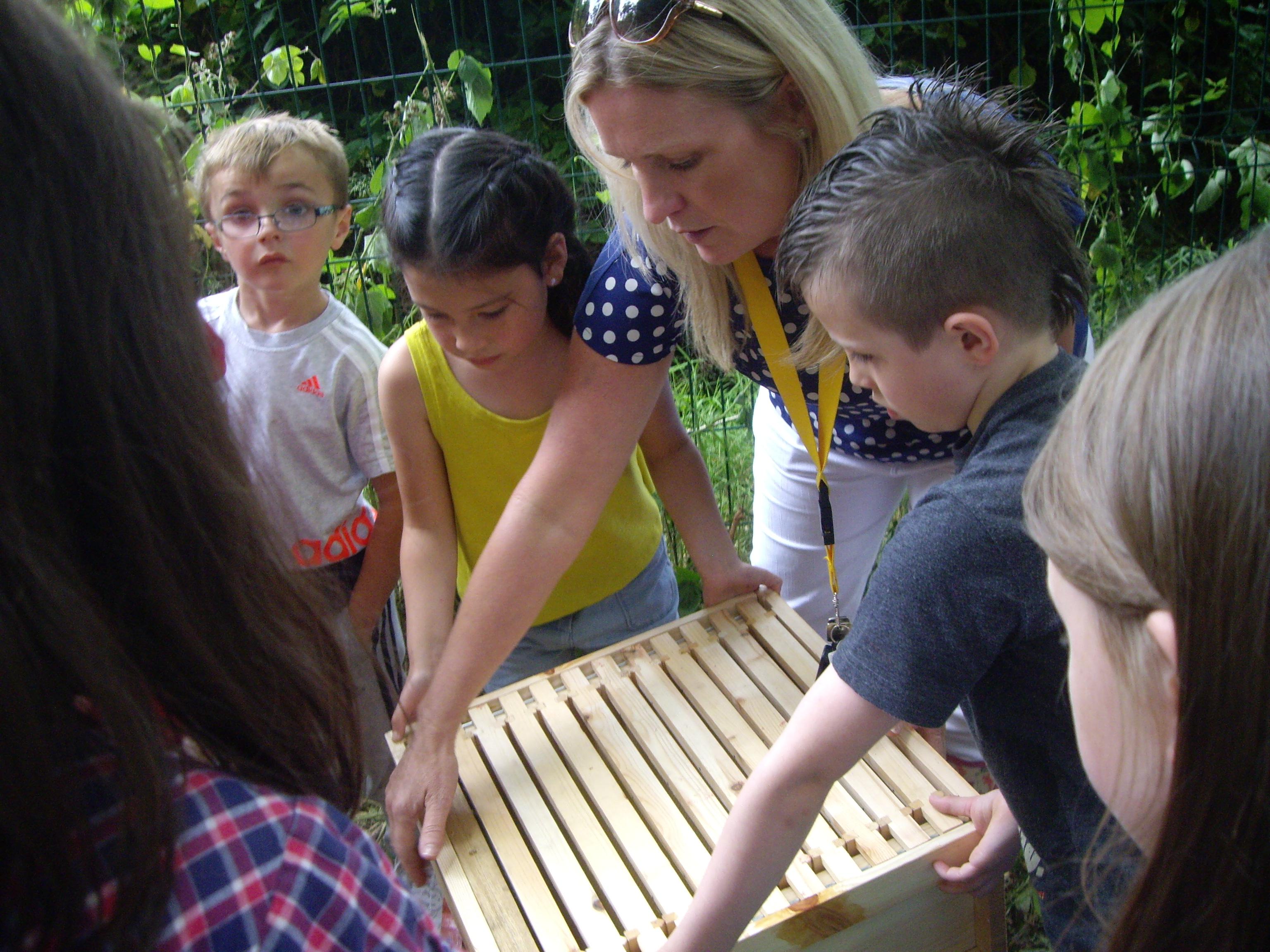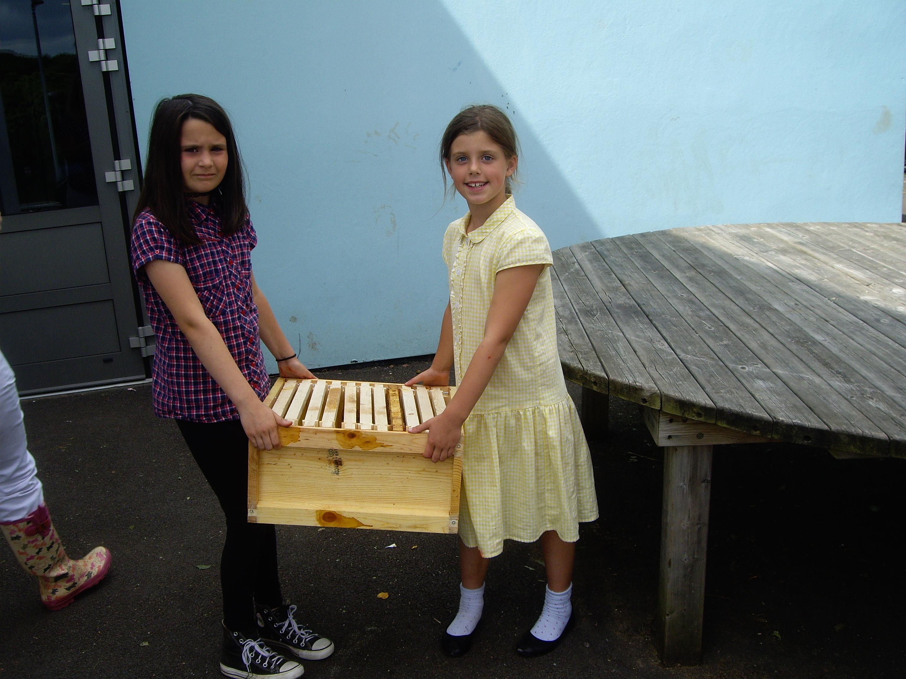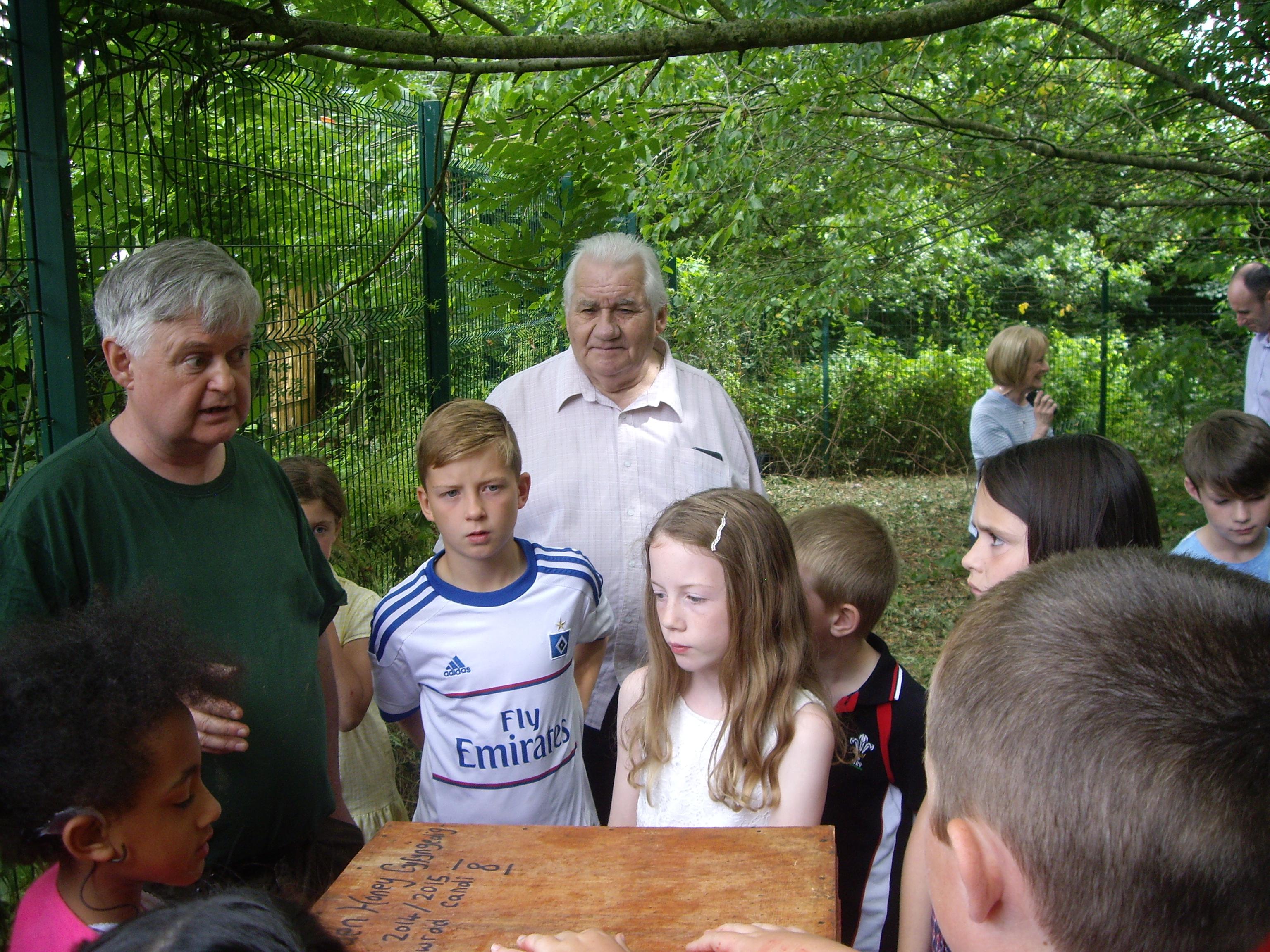 The children and staff worked with Bron Afon and Mel Torfaen Honey to adapt the school grounds to bee friendly areas and then we installed an apiary in our school woodland area.